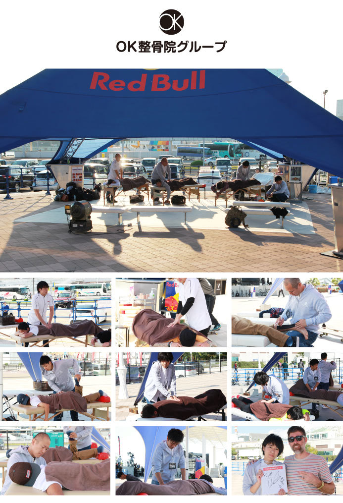 OK整骨院チームは大会に出場する選手のボディケア担当としてしっかりとサポートさせていただきました。一流アスリートのボディケアを担当した経験を、日頃の整骨院での患者様ケアに役立ててまいります。